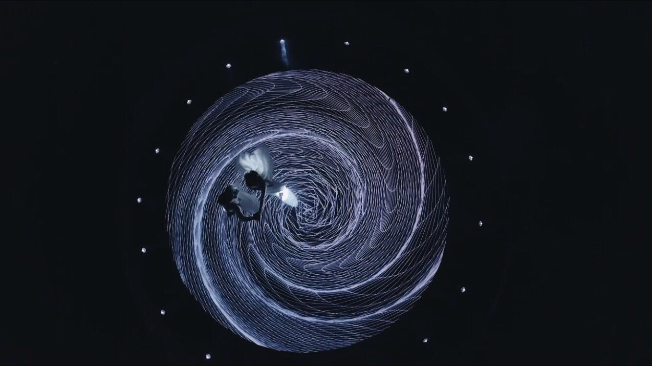 With the lighting arrangement, kinetic movement of the light, and the performer , it shows the relationship between universe, knowledge and human.
